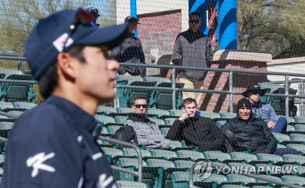 | ▲ Major league scouts take in a scrimmage between South Korea and the NC Dinos ahead of the World Baseball Classic at Kino Veterans Memorial Stadium in Tucson, Arizona, on Feb. 16, 2023. (Yonhap) |