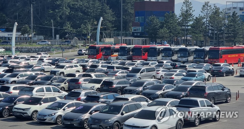 | ▲ 다시 찾은 관광버스 (강릉=연합뉴스) 유형재 기자 = 사회적 거리두기가 해제된 가운데 20일 강원 강릉시 강릉항 주차장에는 많은 관광버스가 다시 찾는 등 움츠렸던 관광이 다시 기지개를 켜고 있다. 2022.4.20 yoo21@yna.co.kr |