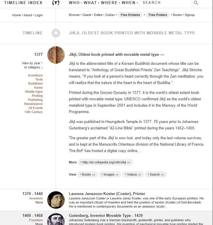 ▲ '타임라인 인덱스'에 추가된 직지 설명 [사이트 캡처, DB 및 재판매 금지]