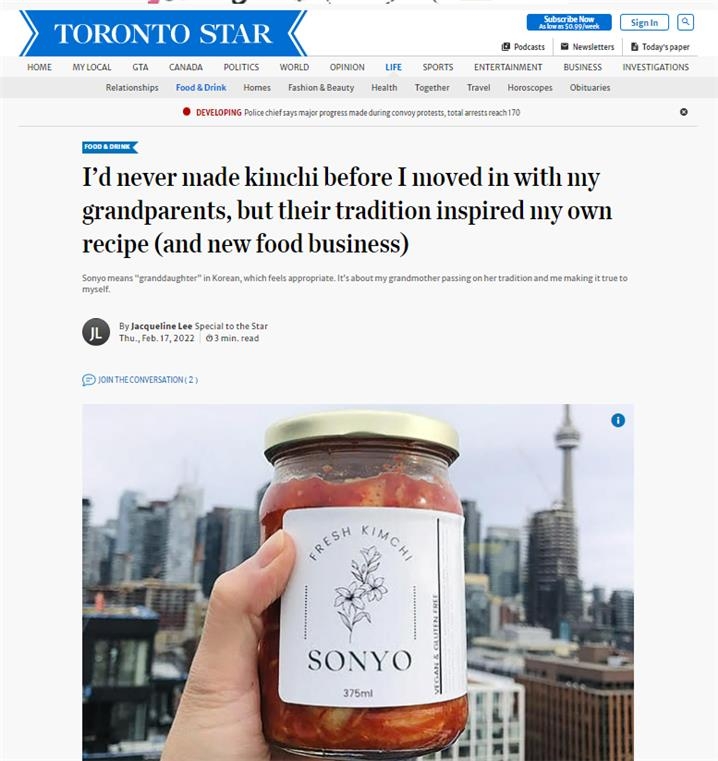 | ▲ '토론토 스타'에 실린 '손녀 김치' 관련 기사 [출처: 토론토 스타 캡처, DB 및 재판매 금지] |