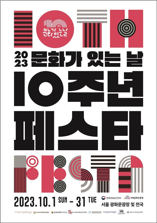 문화체육관광부는 10월 '2023 문화의 달' 기념행사를 열고, 올해 지정 10주년을 맞은 '문화가 있는 날'을 기념해 서울 광화문광장 등 전국 각지에서 페스타를 개최한다고 28일 밝혔다.