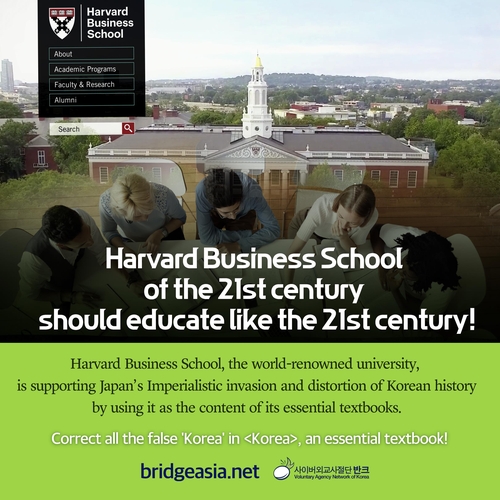 | ▲ 하버드 경영대학원 측에 한국사 왜곡 시정을 요구하는 포스터 [반크 제공] |