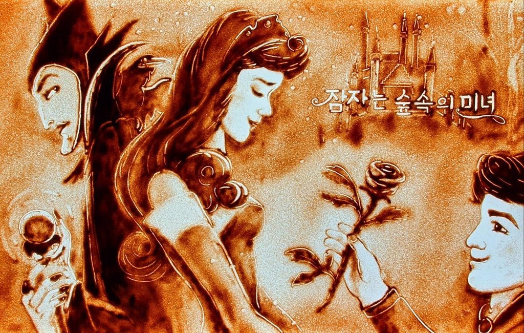 교향악단의 선율과 함께 샌드 아티스트 이길식 작가의 손으로 '잠자는 숲속의 미녀' 이야기가 펼쳐진다.