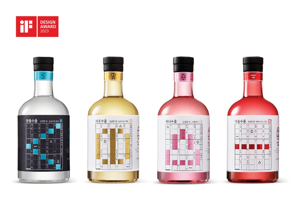 ▲ 편의점 이마트24는 전통주 패키지 디자인 '수을수을'로 세계 3대 디자인상 가운데 하나인 'iF 디자인 어워드' 본상을 받았다고 16일 밝혔다. 수을수을은 세종대왕이 창안한 한국 최초의 '유량악보'(음의 높이와 길이를 나타내는 악보)인 '정간보'를 모티브로 제작됐다. 한국 전통 술과 문화를 현대적으로 재해석해 심사위원들로부터 좋은 평가를 받았다고 이마트24는 전했다. (서울=연합뉴스)