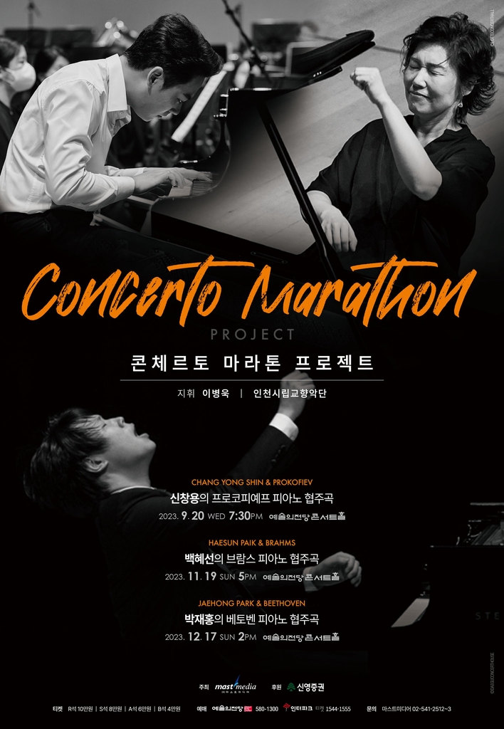 공연기획사 마스트미디어는 오는 9∼12월 예술의전당에서 세 피아니스트가 프로코피예프, 브람스, 베토벤의 피아노 협주곡을 연주하는 '콘체르토 마라톤 프로젝트'를 개최한다고 10일 밝혔다.
