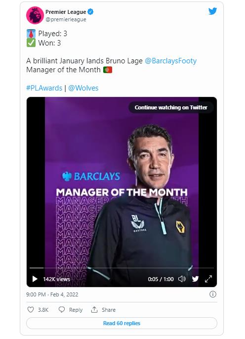 EPL 사령탑으로 데뷔 시즌을 보내는 라즈 감독은 1월에 울버햄프턴이 치른 정규리그 3경기를 모두 승리로 이끌었다.