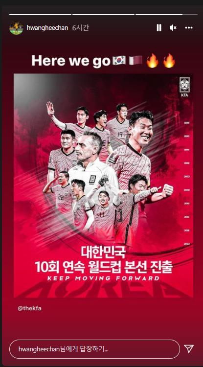 | ▲ 카타르 월드컵 본선 진출을 축하한 황희찬. [황희찬의 인스타그램 캡처. 재판매 및 DB 금지] |