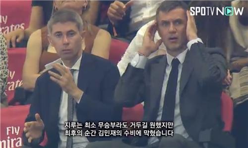 명 센터백 출신인 파올로 말디니 AC밀란 단장이 현장에서 이 장면을 본 뒤 놀라 머리를 감싸 쥐는 장면이 함께 인터넷 공간에서 인기를 끌고 있다.