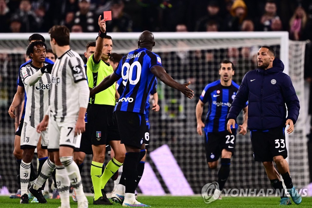 | ▲ 경고 누적으로 퇴장당하는 루카쿠 [AFP=연합뉴스] |