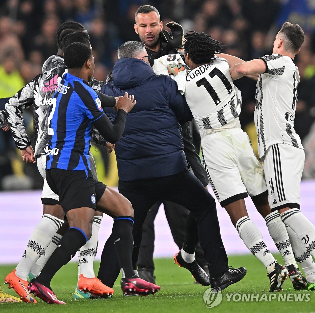 양 팀 선수들은 라커룸으로 향하는 통로에서도 '난투극'에 가까운 몸싸움을 벌였다.