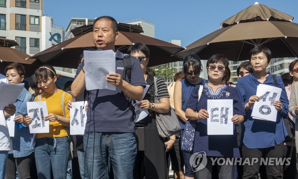 | ▲ 무릎 꿇고 특수학교 설립 호소하는 부모들 2017년 9월 5일 강서구 특수학교 설립 주민토론회에서 무릎 꿇고 특수학교 설립 호소하는 부모들 [연합뉴스TV 제공] |