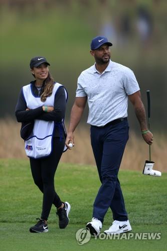| ▲ LPGA투어 대회 셀러브리티 자격으로 출전한 힉스와 캐디를 맡은 샤이엔 우즈. [AFP/게티이미지=연합뉴스] |