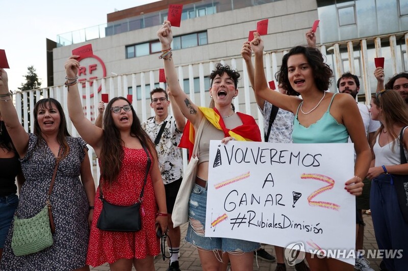| ▲ 루비알레스 회장의 퇴진을 요구하는 스페인 여성들 [로이터=연합뉴스] |