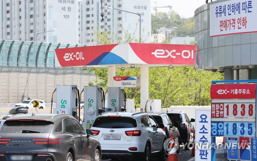 | ▲ 판매가격 인하된 주유소에 줄 선 차량 (용인=연합뉴스) 홍기원 기자 = 유류세 인하 폭이 기존 20%에서 30%로 확대된 지난 1일 오후 경기도 용인시 경부고속도로 부산방향 기흥휴게소 주유소에 차량이 주유를 위해 줄을 서 있다. xanadu@yna.co.kr |