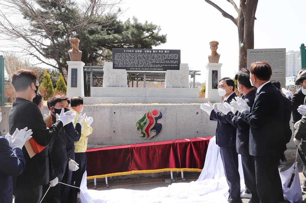 마산고등학교는 3·15 의거 62주년인 지난 15일 학교에서 김영준·김용실 열사 흉상 제막식을 열었다고 16일 밝혔다.