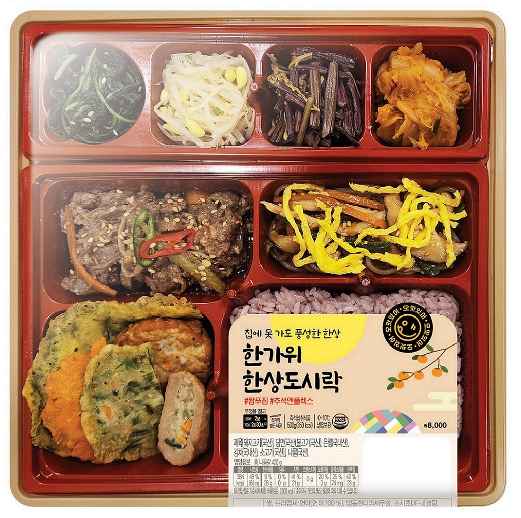 이마트24는 모둠전과 삼색나물, 소불고기, 잡채 등 명절 음식들로 구성된 '한가위한상도시락'을 이날부터 판매한다. 9월 말까지 행사카드로 구매하면 반값에 구매할 수 있다.