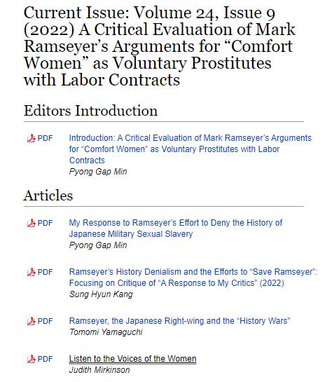 특별판에서 야마구치 교수도 "램지어의 주요 주장은 1990년대 이후 한국과 일본의 역사 부정론자들의 주장을 그대로 반복했다"며 일본의 역사전쟁이 '학술적 자유'로 포장한 우익뿐 아니라 정부 차원의 노력이라는 점을 강조했다.