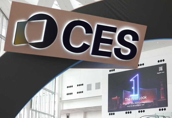A video on Samsung Electronics Co. is displayed at the CES technology show, one of the world's largest IT and home appliance trade fairs, in Las Vegas, Nevada, on Jan. 5, 2026, a day before the four-day fair opens with about 4,500 companies taking part. (Yonhap)