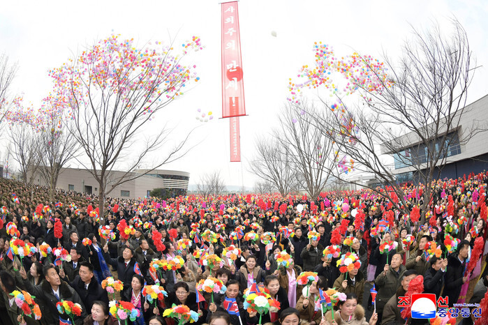 North Korean residents are jubilant as they attend the inauguration ceremony of regional factories in Hwangju, North Hwanghae Province, western North Korea, on Dec. 16, 2025, in this photo released by the North's official Korean Central News Agency the next day. The dedication of the factories is part of a project that the North's leader Kim set forth in January 2024 to build modernized factories in 20 cities and counties over the next decade to enhance the living standards of the people. (For Use Only in the Republic of Korea. No Redistribution) (Yonhap)