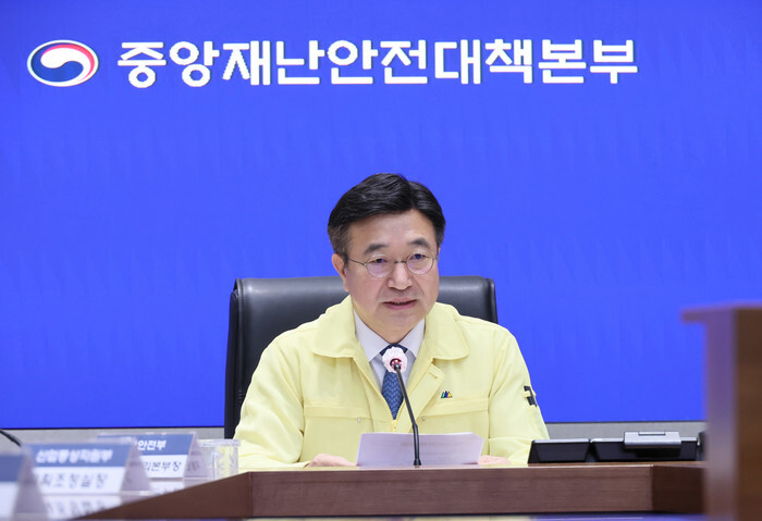 Interior and Safety Minister Yun Ho-jung speaks during a disaster response meeting of the Central Disaster and Safety Countermeasures Headquarters at the government complex in Seoul on Sept. 30, 2025, to deal with disruptions in government online services and networks and restore them following a fire at the data center in the central city of Daejeon on Sept. 26. (Yonhap)