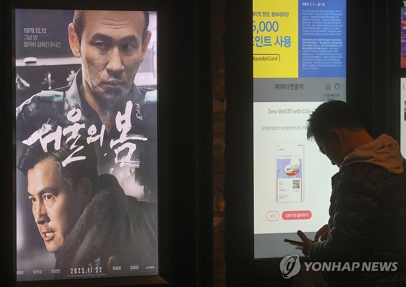 | ▲ 천만 영화 향해 질주하는 '서울의 봄' (서울=연합뉴스) 류효림 기자 = 지난 10일 오후 서울 시내 한 영화관 모습. 2023.12.10 ryousanta@yna.co.kr |