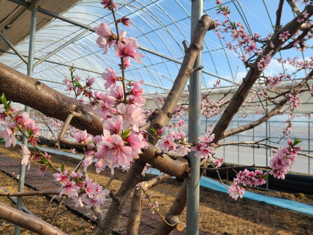시설재배를 하면 병해충 발생을 줄일 수 있고 고품질의 복숭아를 조기 생산하는 장점이 있다.