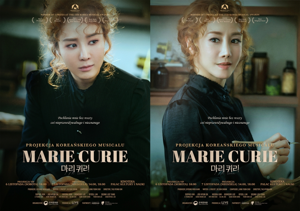 제작사 라이브는 주폴란드 한국문화원과 협업해 오는 11월 6∼7일 바르샤바 문화과학궁전 내 키노테카(Kinoteka) 극장에서 뮤지컬 '마리 퀴리' 공연 실황 상영회를 개최한다고 28일 밝혔다.