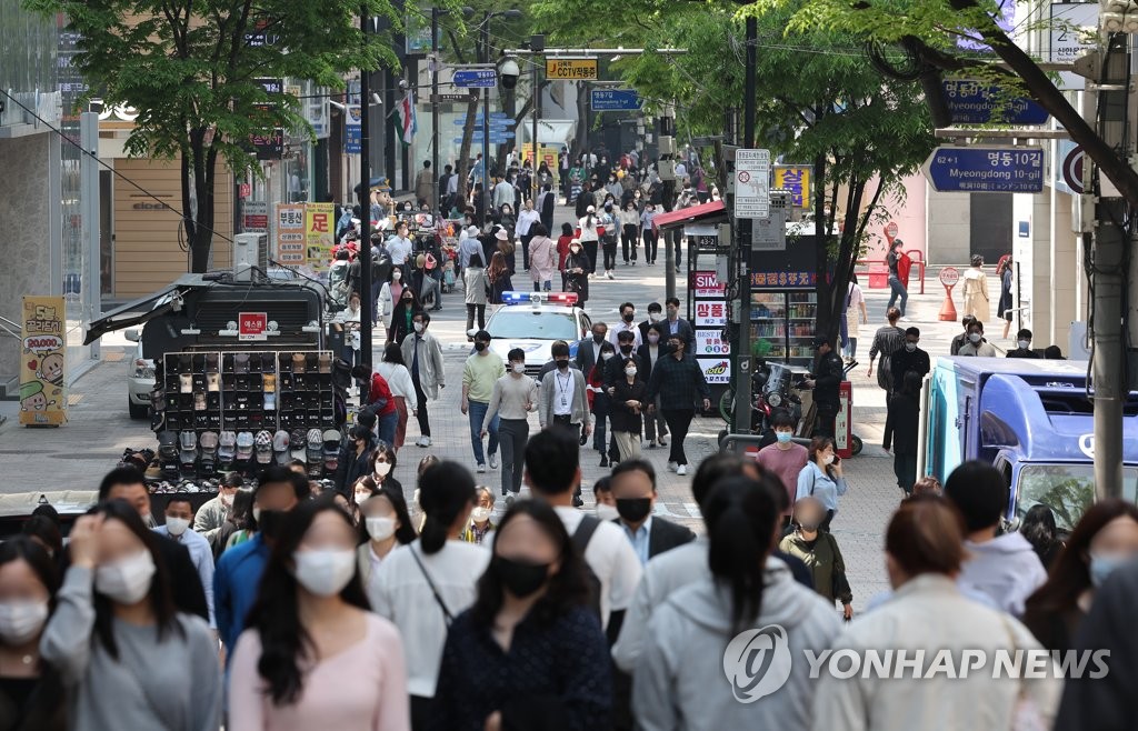 | ▲ This file photo, taken April 20, 2022, shows the shopping district of Myeongdong bustling with citizens as South Korea lifted almost all COVID-19 social distancing rules. (Yonhap) |
