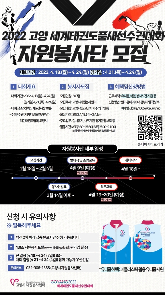 | ▲ 세계태권도품새선수권대회 자원봉사단 모집 안내문 [고양시 제공, 재판매 및 DB 금지] |