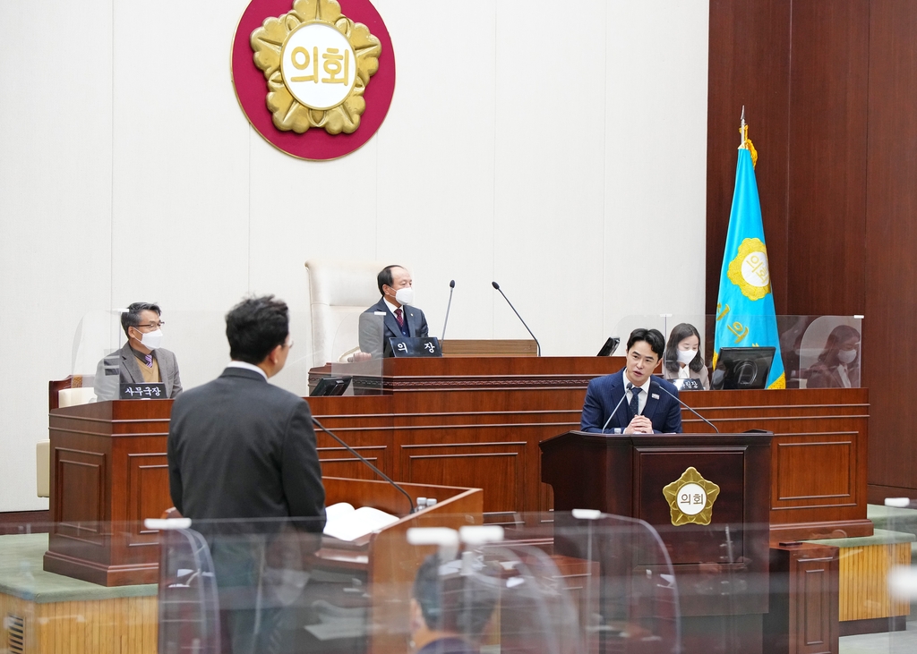 | ▲ 시정 질의하는 김지헌 의원 [원주시의회 제공.재판매 및 DB 금지] |