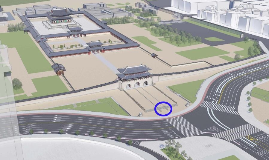 | ▲ 광화문 월대 복원 조감도 파란색으로 표시한 부분은 서수상 원위치를 나타낸 것. |