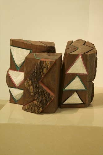 작가가 평생 주력한 매체는 나무였다. 1970년대 중반의 '기원쌓기' 시리즈는 흔히 소원을 빌며 돌을 위로 쌓는 돌쌓기처럼 절단된 면을 쌓아 올리듯 나무를 다듬은 것이다. 아르헨티나 이주 후에는 알가로보나 팔로산토 같은 현지의 단단한 나무들을 이용해 다양한 변주를 시도한다. 1990년대는 날개나 십자가 또는 솟대를 연상시키는 T자 형태의 작품을 자주 했고 2000년 이후에는 남미의 토테미즘에서 영향을 받아 목조각에 색을 더했다.