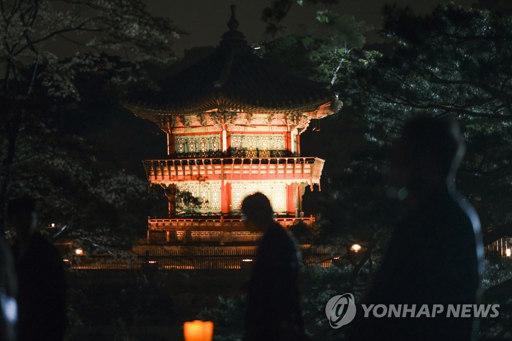 | ▲ 밤에 만나는 경복궁 (서울=연합뉴스) 류효림 기자 = 13일 오후 서울 경복궁에서 열린 경복궁 별빛야행 사전행사에서 참석자들이 경내를 둘러보고 있다. 문화재청 궁능유적본부와 한국문화재재단은 이달 15일부터 5월 13일까지 매주 수∼일요일에 하루 두 차례 '경복궁 별빛야행' 프로그램을 운영한다고 밝혔다. 2023.4.13 ryousanta@yna.co.kr |