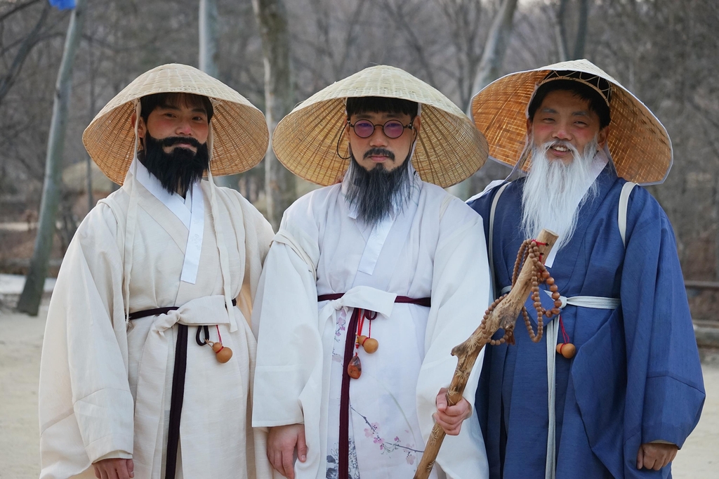 | ▲ '한국전래동화' 뮤직비디오에서 삿갓과 도포를 쓴 윤석철트리오 [안테나 제공. 재판매 및 DB 금지] |