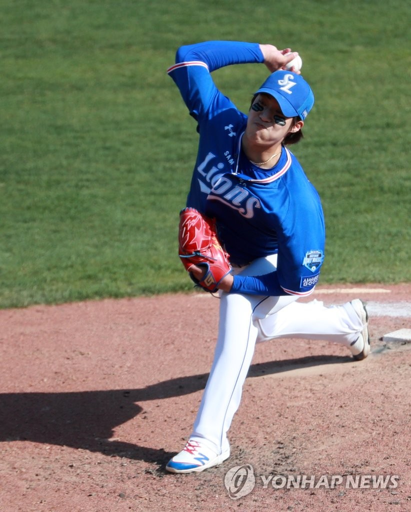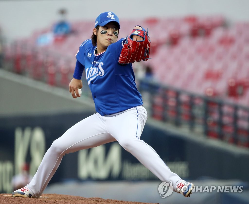 | ▲ In this file photo from April 18, 2021, Won Tae-in of the Samsung Lions pitches against the Lotte Giants during a Korea Baseball Organization regular season game at Sajik Stadium in Busan, 450 kilometers southeast of Seoul. (Yonhap) |