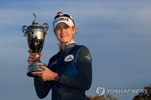 (서울=연합뉴스) 임순현 기자 = 미국여자프로골프(LPGA) 투어 2021시즌 주요 개인상 부문에서 경쟁 중인 고진영(26)과 넬리 코다(미국)가 시즌 마지막 대회까지 치열한 승부를 이어갔다.