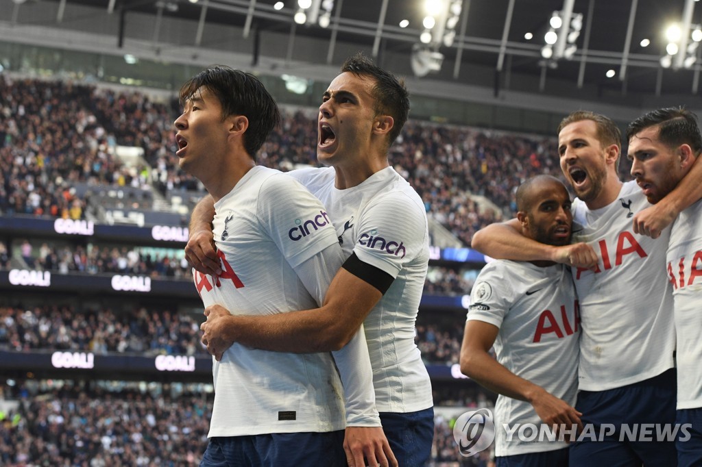 | ▲ 손흥민(왼쪽)과 세리머니 하는 레길론(왼쪽에서 두 번째) [EPA=연합뉴스] |