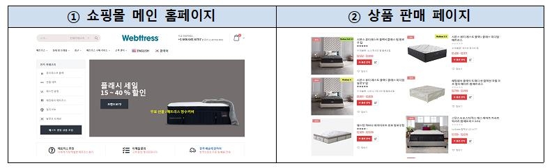 | ▲ 웹트리스 쇼핑몰 메인 홈페이지와 상품 판매 페이지 [한국소비자원 보도자료 캡처. 재판매 및 DB 금지] |
