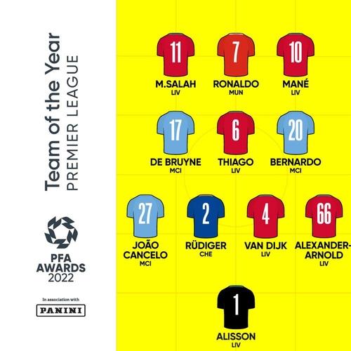 'PFA 올해의 팀'에는 손흥민과 공동 득점왕을 차지한 무함마드 살라흐를 포함한 리버풀 선수 6명과 크리스티아누 호날두(맨체스터 유나이티드) 등이 선정됐다. 살라흐는 '올해의 선수'로도 뽑혔다.