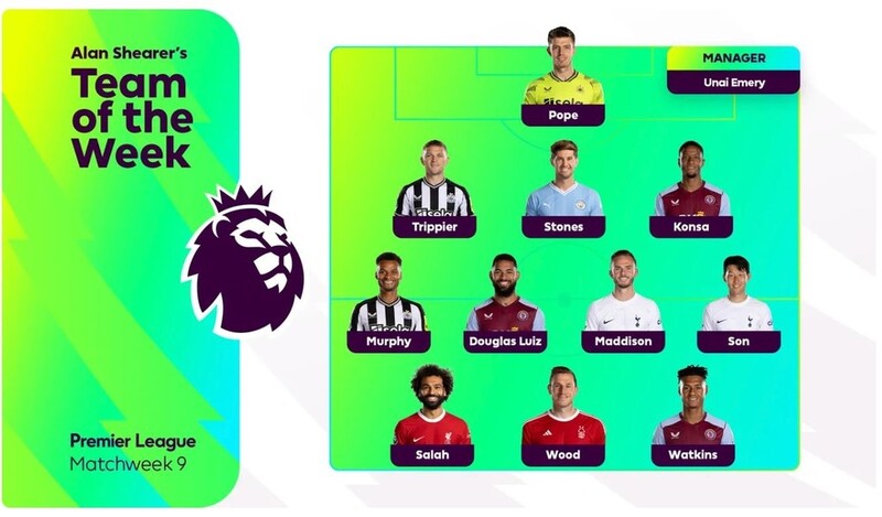 '레전드' 앨런 시어러가 선정하는 '이주의 팀'에서 손흥민은 팀 동료인 제임스 매디슨과 함께 2선 공격수의 한 자리를 꿰찼다.