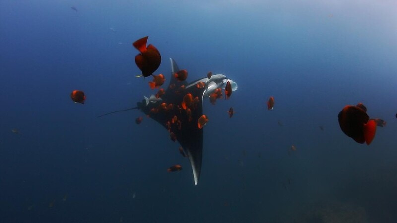 '만타가오리…'는 8m에 달하는 거대한 크기의 지느러미로 우아한 유영과 어류 중 가장 발달한 인지능력을 가진 만타가오리의 생활방식을 엿볼 수 있는 다큐멘터리 작품이다.