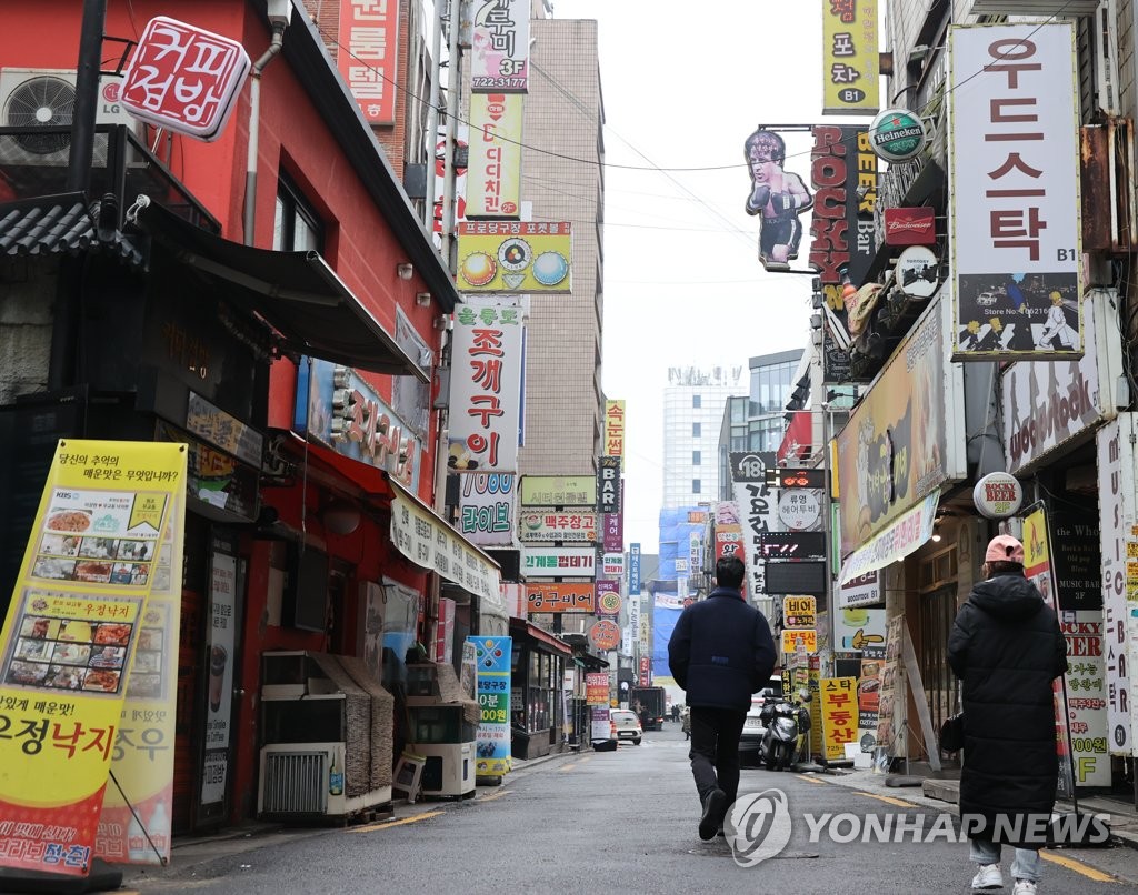 | ▲ This photo, taken March 1, 2022, shows a side street full of restaurants in Seoul's central district of Jongno. (Yonhap) |