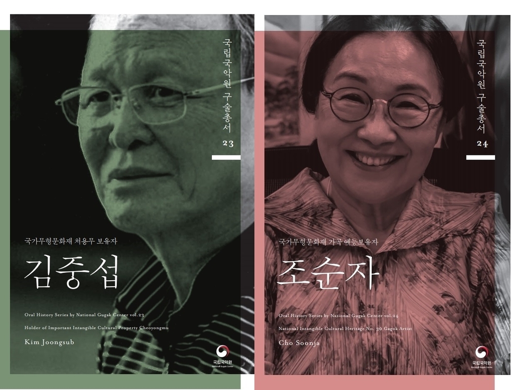(서울=연합뉴스) 김용래 기자 = 국립국악원이 국가무형문화재 처용무와 가곡 예능 보유자인 김중섭·조순자 명인의 삶과 예술세계가 담긴 '국립국악원 구술총서' 제23·24집을 발간했다고 6일 밝혔다.