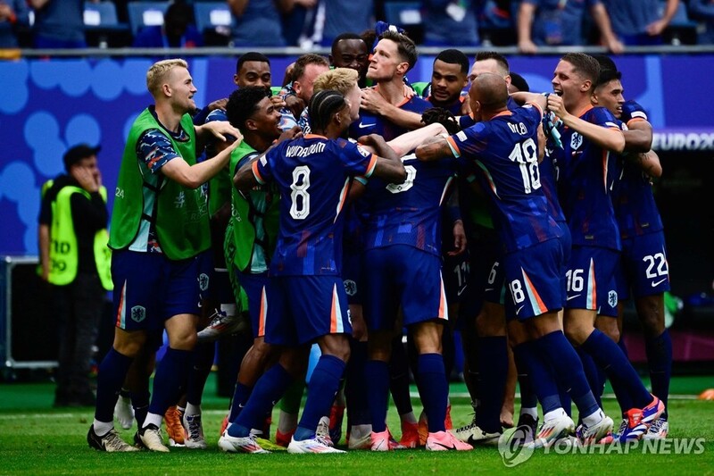 | ▲ 바우트 베흐호르스트의 역전 결승골에 환호하는 네덜란드 선수들 [AFP=연합뉴스] |