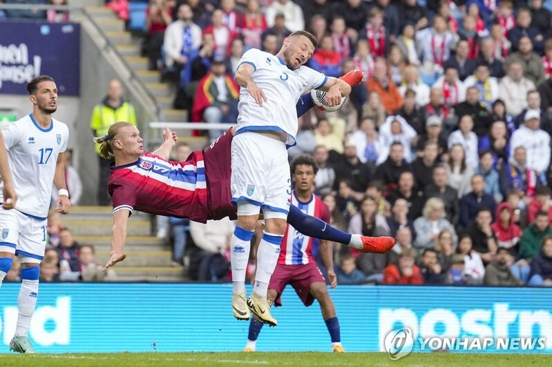 (서울=연합뉴스) 설하은 기자 = 덴마크 축구대표팀이 2024 유럽축구선수권대회(유로 2024)를 준비하며 치른 평가전에서 '세계 최고의 골잡이' 엘링 홀란이 버틴 노르웨이를 꺾었다.
