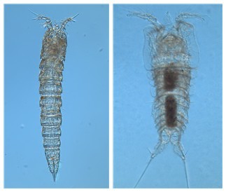 This combined photo, released by the Honam National Institute of Biological Resources on Oct. 23, 2025, shows two new copepod species, not found anywhere else in the world, that the institute's researchers have discovered in waters off the easternmost South Korean islets of Dokdo. (PHOTO NOT FOR SALE) (Yonhap)