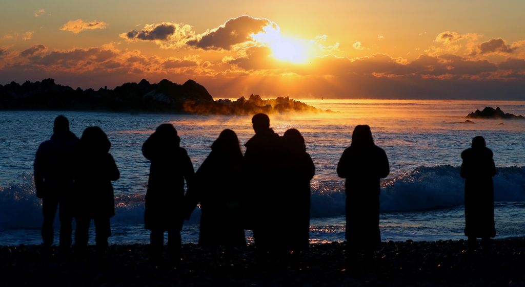 | ▲ 문무대왕릉 앞 바닷가 찾은 해맞이객 (경주=연합뉴스) 김현태 기자 = 2021년 새해 첫날인 1일 경북 경주시 양북면 문무대왕릉 앞 바닷가에서 해맞이객들이 떠오르는 해를 보고 있다. 2021.1.1 mtkht@yna.co.kr (끝) |