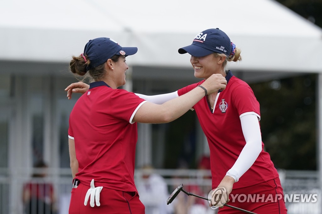 5일(한국시간) 미국 오하이오주 털리도의 인버네스 클럽(파72)에서 열린 대회 첫날 오후 포볼(각자의 공으로 경기해 더 좋은 성적을 그 팀의 점수로 삼는 방식) 미국의 넬리 코다-앨리 유잉 조와 유럽의 마들렌 삭스트룀(스웨덴)-나나 쾨르스츠 마센(덴마크)의 경기에서였다.