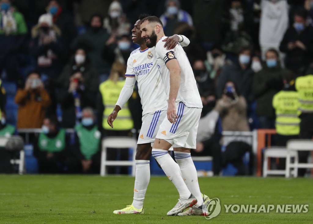 후반 7분에는 벤제마의 패스를 받은 비니시우스가 페널티 지역으로 침투, 상대 수비진과 경합에서 공을 지켜낸 뒤 추가 골을 신고했다.