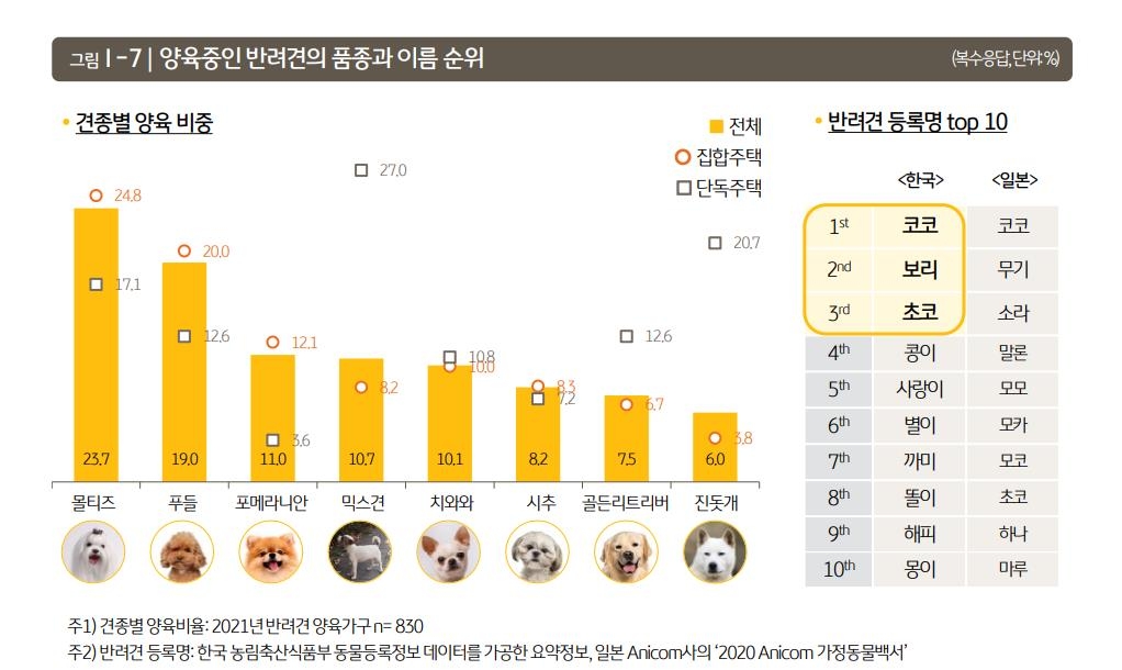 | ▲ 반려견 품종과 이름 순위 [KB금융지주 경영연구소 제공. 재판매 및 DB 금지] |